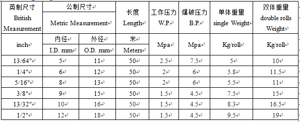 用途:主要用于焊接領(lǐng)域。 特性:具有較高的工作壓力、質(zhì)量輕、耐磨、耐腐蝕、耐老化、抗彎曲、外型美觀(guān)、拆分自如,是橡膠焊接管的優(yōu)良替代品。 材料:PVC、橡膠、聚酯纖維 適用溫度:-5℃~65℃